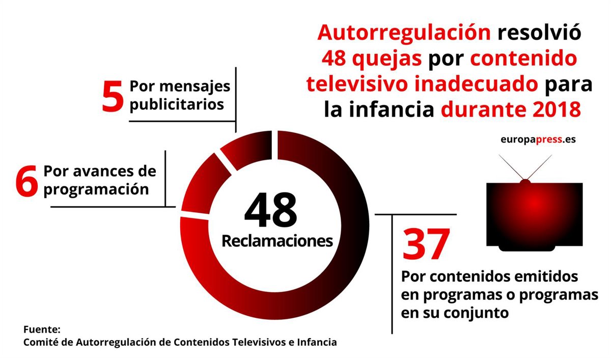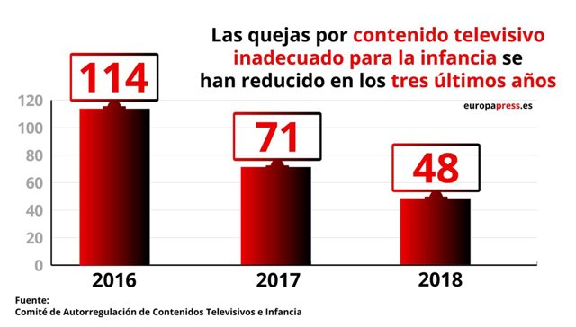 El Comité de Autorregulación de Contenidos Televisivos e Infancia resolvió en 2018 un total de 48 reclamaciones distintas referidas a contenidos y programas difundidos en horario de protección del menor (de 6.00 a 22.00 horas), lo que supone un descenso respecto a las quejas tramitadas en 2017 (71) y 2016 (114), según se desprende del informe anual de este organismo, recogido por Europa Press.