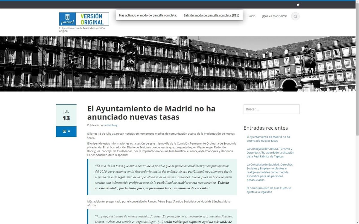La página web arranca con varias entradas. La última se centra en las tasas de turismo y de cajeros automáticos, después de que el concejal de Economía y Hacienda, Carlos Sánchez Mato, anunciara en la comisión del ramo la posibilidad de estudiarlas para introducirlas en los presupuestos de 2016 aunque no era más que una línea de trabajo.