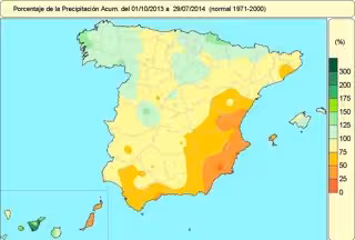 El balance hídrico ha acumulado un 6 por ciento de déficit de precipitaciones desde el 1 de octubre de 2013, con 543 litros por metro cuadrado de media para ese período frente al valor normal de 579 litros por metro cuadrado, según ha informado la Agencia Estatal de Meteorología (AEMET).