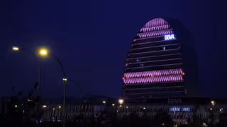 BBVA se ha sumado al Día Internacional para la Eliminación de la Violencia contra la Mujer iluminando de morado su sede corporativa de Madrid, conocida como 'La Vela', en señal de apoyo de todas las mujeres que sufren violencia de género.