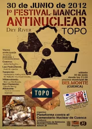 La localidad conquense de Belmonte acogerá el próximo 30 de junio el Primer Festival en contra del cementerio nuclear que se va a instalar en Villar de Cañas, en el que actuará el grupo de rock 'Topo', acompañado de Dry River.