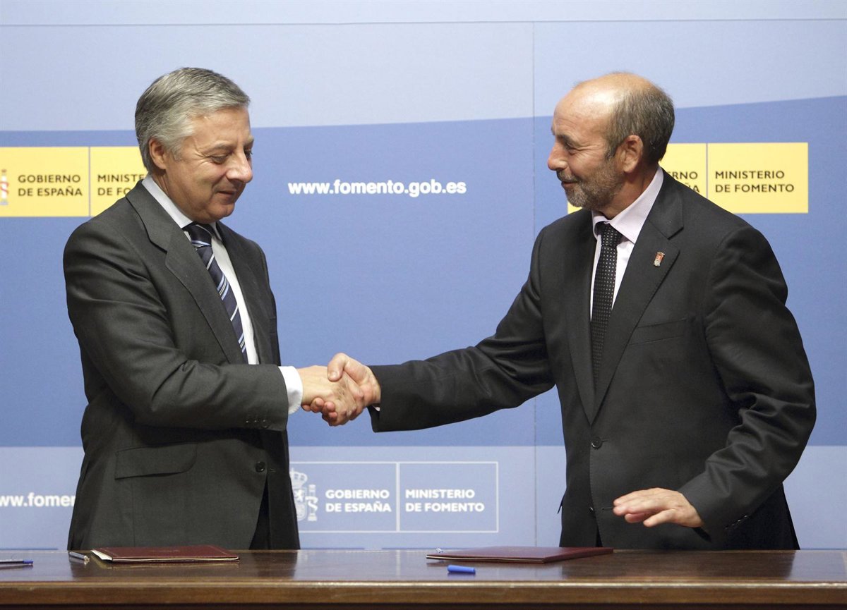 El ministro de Fomento, José Blanco, ha firmado esta mañana con los alcaldes de Briones, Préjano y San Vicente de la Sonsierra (La Rioja) tres convenios de colaboración para la recuperación del patrimonio histórico con cargo a los fondos que se generan para el 1 por ciento Cultural por la contratación de obra pública.