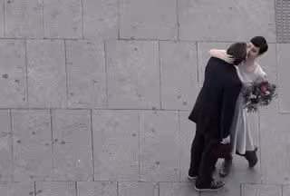 Una pareja es fotografiada en pleno aluvión de bodas canceladas en Madrid por el avance del coronavirus y la recomendación de evitar aglomeraciones, en Callao, Madrid (España), a 13 de marzo de 2020. - Eduardo Parra - Europa Press - Archivo