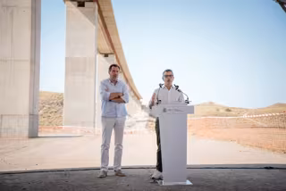 El ministro de Transportes y Movilidad Sostenible, Óscar Puente (i) junto al ministro de la Presidencia, Justicia y Relaciones con las Cortes, Félix Bolaños (d). A 13 de agosto de 2025 en Almería (Andalucía, España). - Marian León - Europa Press