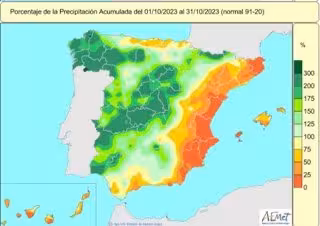 Así, entre el 1 y el 31 de octubre se han recogido 105 litros por metro cuadrado, lo que representa un 38 por ciento más de los 76 litros por metro cuadrado que son el valor normal para el periodo de referencia.