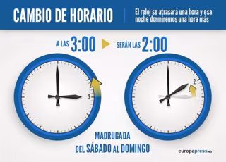 MADRID, 24 Oct. (EUROPA PRESS) - Una buena noticia y una mala. La buena: en la noche del sábado al domingo dormiremos (o saldremos) una hora más. La mala: a partir de ahora anochecerá antes. Y es que en la madrugada del domingo termina el horario de verano y empieza el horario de invierno: a las 3.00 horas serán los 2.00 horas. (En Canarias a las 2.00 horas será la 1.00). Esta costumbre de atrasar el reloj en hora en invierno y adelantarlo en verano se empezó a usar de forma generalizada en 1974 para poder aprovechar mejor la luz del sol (y consumir menos electricidad) tras la primera crisis del petróleo. La Directiva Europea que rige el denominado 'Cambio de hora' fija que el horario de verano comienza en el último domingo del mes de marzo y que termina el último domingo de octubre. De este modo, a partir del próximo domingo recuperaremos la que se considera hora oficial en España, que es ir una hora por delante del tiempo que marca el meridiano de Greenwich (Greenwich Mean Time GMT). Recuerda que si tienes marcada en el móvil la pestaña 'Zona horaria automática' -algo que suele estar por defecto--, el cambio de horario se hará de forma automática. Según estimaciones del Instituto para la Diversificación y Ahorro de la Energía (IDAE), el potencial de ahorro en iluminación en España por el cambio de hora puede llegar a representar un 5 por ciento del consumo eléctrico en iluminación, equivalente a unos 300 millones de euros. Esta medida no solo se adopta en España, sino que se lleva a cabo en unos 70 países en todo el mundo. Japón es el único país industrializado que no se ha adaptado aún a esta normativa. En concreto, se aplica en todos los países de Europa, América del Sur, África y en algunas zonas de Estados Unidos y Canadá.
