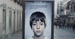 Para aquellos que midan 1,35 metros, que suelen ser los niños de hasta 10 años, verán un anuncio donde aparezca el niño con varias marcas en la cara, signo de haber sufrido una agresión, además de una frase que le explica qué hacer en el caso de que el niño que lo esté viendo haya sufrido maltratos o abusos por parte de un adulto, llamando a un número que solo él verá.