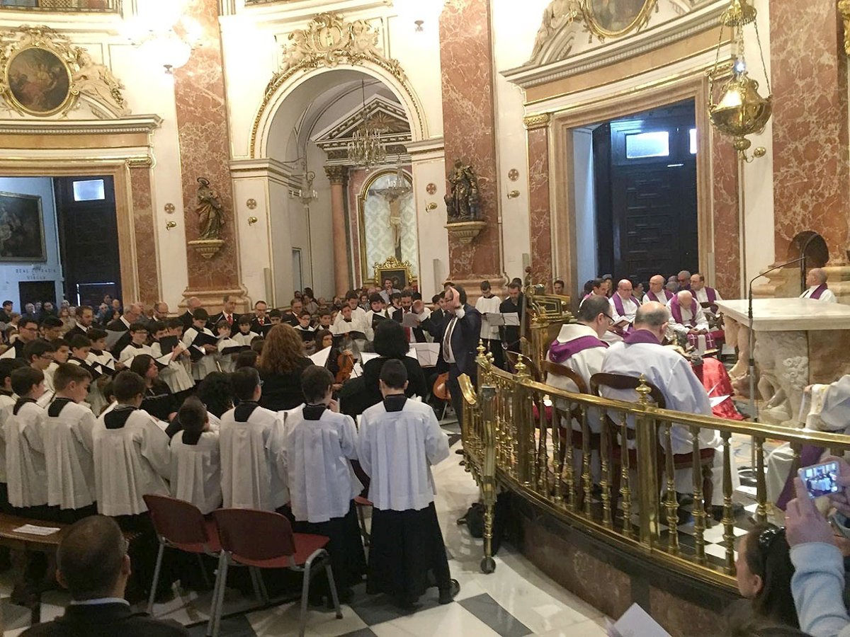 El cardenal arzobispo de Valencia, Antonio Cañizares, ha presidido este sábado en la Basílica de la Virgen de los Desamparados el rezo del 'Planctus Mariae', (El lamento de Maria), oficio de Sábado Santo, en el que han intervenido la Escolanía de la Virgen y antiguos escolanes, con el Ensemble Laetentur, interpretando el Stabat Mater de Antonio Caldara (1670-1736), según ha informado el Arzobispado en un comunicado.