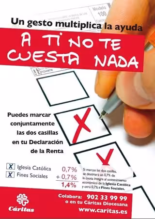 Así, invitan a poner una 'x' en ambas casillas bajo el lema 'Un gesto multiplica la ayuda. A ti no te cuesta nada' pues, según indica,