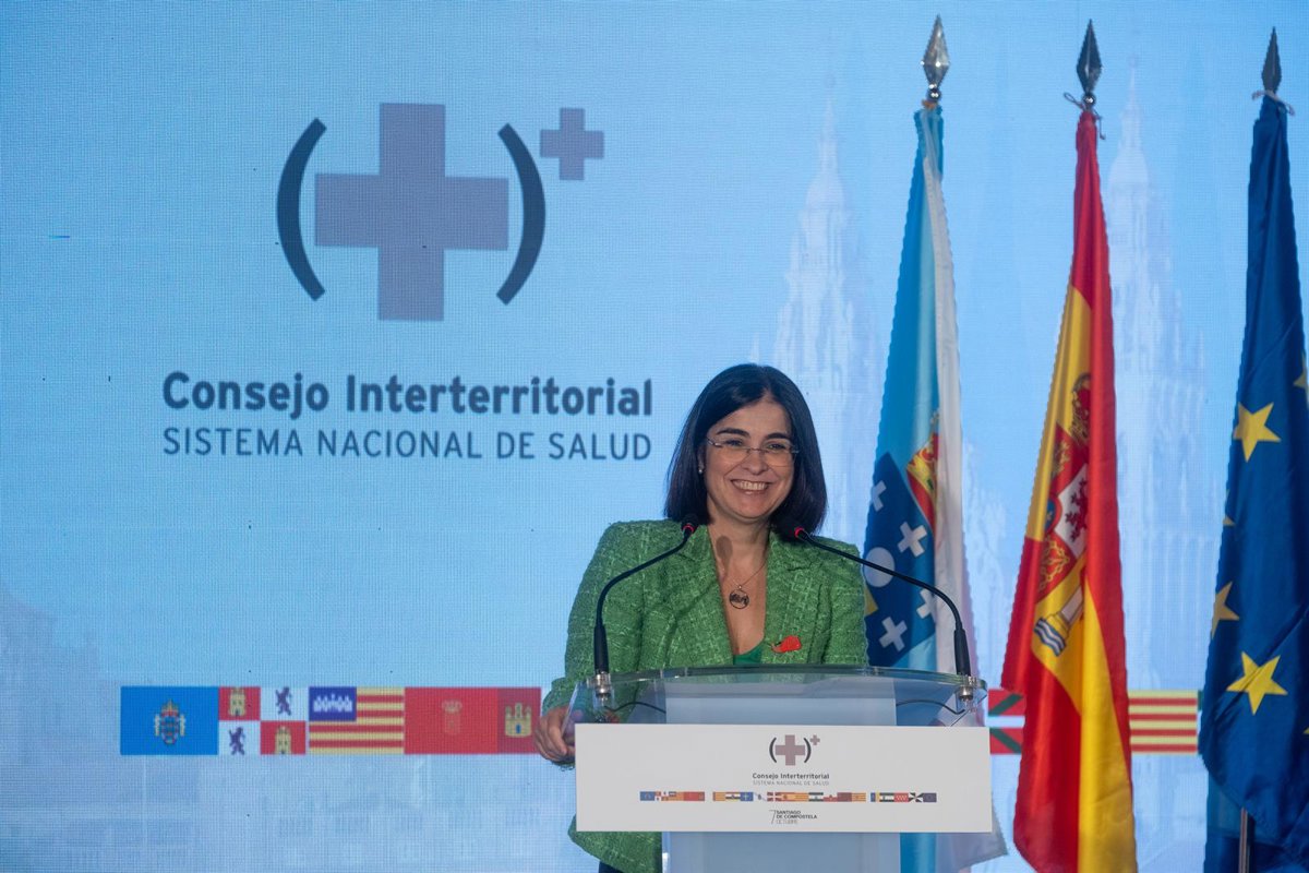 La ministra de Sanidad, Carolina Darias, comparece en rueda de prensa tras la reunión del Consejo Interterritoria del SNS, a 7 de octubre de 2022, en Santiago de Compostela, A Coruña, Galicia (España). - César Arxina - Europa Press