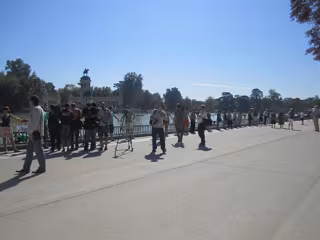 A continuación, se han desplazado hacia la Puerta de Alcalá, y en el trayecto han rodeado una de las esculturas que hay dentro del parque mientras que coreaban lemas como 'Funcionarios asignación', 'Enseñanza de calidad', o cantaban canciones como 'El patio de mi cole es particular si no tiene dinero no puedes entrar, agáchate, y vuélvete agachar que si te ve la Espe te hace pagar'.