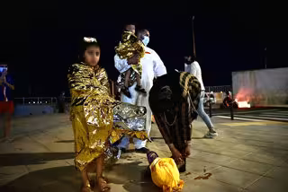 Un hombre migrante coge en brazos a un menor acompañado de una mujer y una niña pequeña, a 17 de mayo de 2021, en Ceuta (España). España ha movilizado al Ejército en la ciudad tras la entrada de más de 5.000 marroquíes en 24 horas. - Antonio Sempere - Europa Press