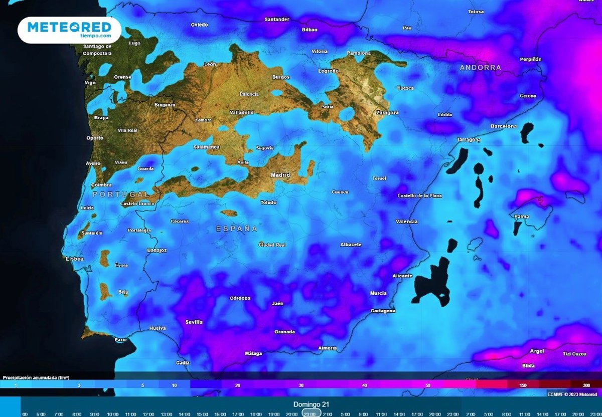 Acumulados de precipitación previstos hasta la noche del domingo en la Península y Baleares. - METEORED