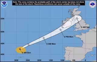 El ciclón tropical 'Helene', que este domingo y lunes afectará a la zona marítima de Altair y noroeste de Charcot (al noreste de las Azores), afectará a la costa gallega en la tarde del lunes 17 hasta la madrugada del 18, según el aviso especial emitido a las 13.00 horas por la Agencia Estatal de Meteorología (AEMET).