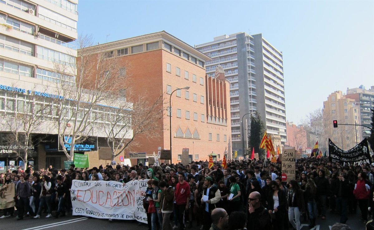 La manifestación ha sido convocada en Zaragoza por la Coordinadora de Estudiantes de Enseñanzas Medidas --que también ha promovido este miércoles la no asistencia a las clases de los estudiantes de Secundaria--, y a ella se han adherido diferentes colectivos, como el Colectivo de Estudiantes Progresistas de Aragón, la Asociación de Estudiantes de Aragón y formaciones políticas como Izquierda Unida.