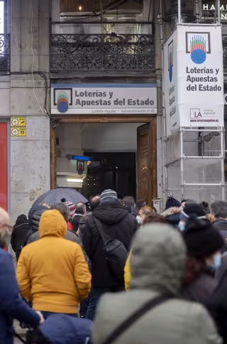 Archivo - Varias personas hacen cola en la Administración de Loterías 'El jorobado de la suerte', a 7 de diciembre de 2021, en Madrid (España). - Alberto Ortega - Europa Press - Archivo