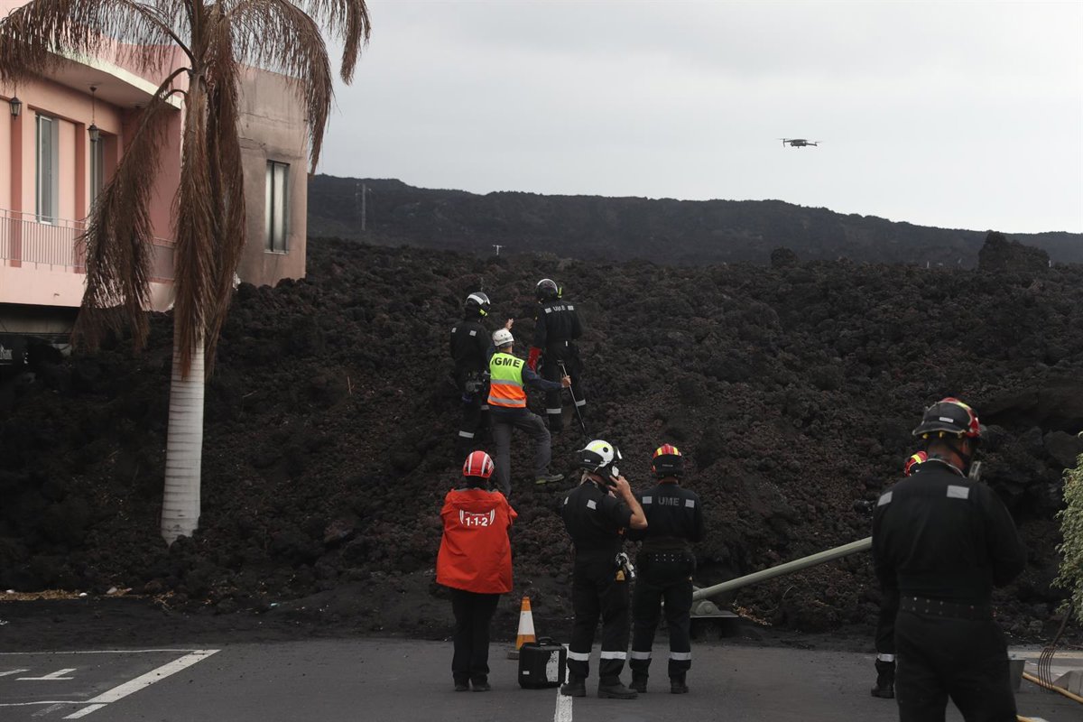 Los trabajos se iniciaron en la tarde de este lunes bajo la supervisión de Morcuende junto a personal técnico del Cabildo de La Palma y el asesoramiento de miembros del comité científico y de la Unidad Militar de Emergencias (UME).