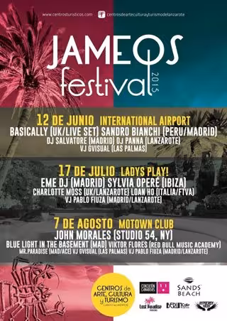 La primera cita del Jameos Festival -bautizada International Airport y a celebrar el 12 de junio-, ofrece un concierto de la banda londinense Bassically, un grupo que ejecuta su repertorio de manera orgánica, con instrumentación y sin sonidos pregrabados. Se trata de un quinteto (voz, teclados, sintetizadores y batería). Esta primera cita se completa con las sesiones de los dj's Sandro Bianchi, fundador de Madacti*ve Collective, un selector que combina sus sesiones con producciones en sellos como Sonar Kollectiv o Subterfuge y emisiones nocturnas en LocaFm, Radio Círculo e Ibiza Fm en las que da rienda suelta al jonkie de las ondas que lleva dentro; Dj Salvatore, que comenzó hace 14 años pinchando Hip Hop, Rap y Acid Jazzy, ahora centra su atención en las nue*vas tendencias electrónicas europeas; y Dj Panna, un disc jockey y productor español de música house y deep y lounge con residencia en Lanzarote. Las imágenes que se proyectarán esa noche en la Cueva de Jameos del Agua llevarán la firma de GVisual, aka de Gregorio Viera, un artista que de*sarrolla sus trabajos esencialmente den*tro de los terrenos del vídeo y la performance. Los horarios de las actuaciones serán siempre desde las 21.30 horas a las 04.30.