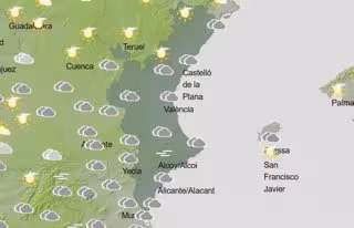La Comunitat Valenciana tendrá este sábado cielo nuboso, disminuyendo a intervalos nubosos por la tarde y con probables precipitaciones débiles y dispersas en el sur de Valencia y norte de Alicante, según la previsión de la Agencia Estatal de Meteorología (Aemet).