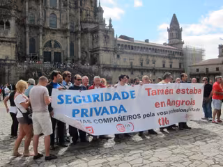 Por su parte, otro representante de los vigilantes de seguridad, Mario Teijo, de la CIG, ha señalado que "siempre" son "los grandes olvidados". "Venimos a agredecer la gran profesionalidad de nuestros compañeros, que han dignificado a nuestro sector. Que se vea que somos un sector también importante en la sociedad y que, cuando se nos requiere y hacemos falta, estamos aquí", ha reivindicado.