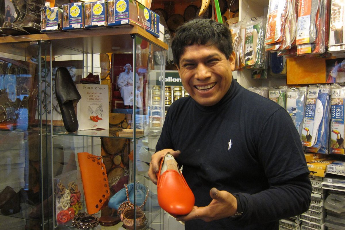 "Cuando le hicieron Santo Padre, le reconocí, era mi cliente, de allí también me traían sus zapatos para arreglarlos porque había otros que se los hacían. Y dije, ¿por qué no hago unos zapatos rojos para él? Y como traían sus zapatos yo sabía el número, la posición del pie, para hacerlos perfectos y lo hice y pedí una audiencia", explica.
