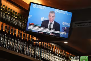 Clientes en un bar observan la comparecencia que el Gobierno Vasco ha dado por televisión para informar de las nuevas medidas adaptadas debido al avance del coronavirus, en Bilbao, Vizcaya, País Vasco (España), a 14 de marzo de 2020. - H.Bilbao - Europa Press
