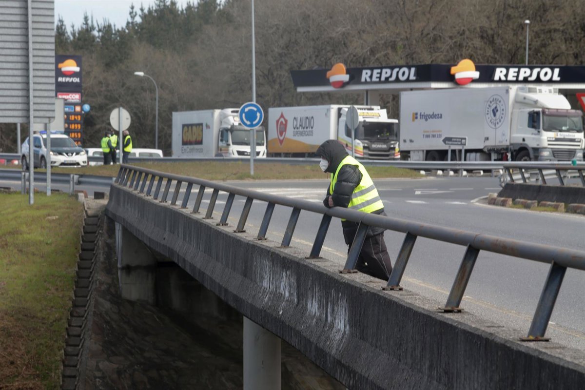 Un miembro de un piquete observa la Autovía A6, durante el cuarto día de paros en el sector de los transportes, a 17 de marzo de 2022, en O Corgo, Lugo, Galicia (España). - Carlos Castro - Europa Press