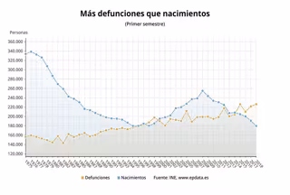 MADRID, 11 Dic. (EUROPA PRESS) - España registra la cifra más baja de nacimientos y la más baja de defunciones desde 1941, según han confirmado a Europa Press fuentes del INE. Los nacimientos son los más bajos desde en 1.941, año en el que comenzaron a registrarse estos datos. En cuanto a las defunciones, sólo fueron más altas precisamente en 1941, cuando se registraron 259.202. Así, el número de nacimientos continúa a la baja por décimo año consecutivo, sólo interrumpida esta tendencia en el año 2014. Concretamente, de enero a julio de 2018 respecto a los mismos meses de 2017 se han reducido los nacimiento en un 5,8%, lo que se traduce en 11.168 bebés menos, según los datos provisionales de la Estadística del Movimiento de la Población, publicada por el INE este martes 11 de diciembre. El número de alumbramientos de madre extranjera supuso el 20% del total frente al 18,8% del año pasado. Mientras, en este periodo fallecieron en España 226.384 personas, un 2,1% más que en el primer semestre de 2017. Este aumento se debió, fundamentalmente, a la alta mortalidad registrada en el mes de enero. En definitiva, a lo largo de los seis primeros meses de 2018 murieron en España 226.384 personas mientras que nacieron 179.794, es decir, que el crecimiento vegetativo --la diferencia entre alumbramientos y defunciones-- continúa su tendencia negativa en -46.590 personas, y supera al del mismo periodo del año anterior (-30.738). La estadística del INE también ofrece datos de matrimonios. Así, de enero a julio de 2018 se registraron 69.777 matrimonios y caen un 5,7% respecto al mismo periodo que en 2017, es decir, 4.220 matrimonios menos, situándose en el mismo nivel que en 2013 y 2014, años en que estas uniones bajaron. DATOS POR COMUNIDADES AUTÓNOMAS El número de nacimientos disminuyó en la primera mitad de 2018 en todas las comunidades autónomas, especialmente en La Rioja (-13,7%), Extremadura (-10,3%) y Cantabria (-7,8%), que registraron losmayores descensos. Por su parte, el número de muertes aumentó en doce comunidades autónomas y los mayores incrementos se dieron en Canarias (10,2%), Andalucía (5,3%) y Cantabria (5,1%). En cuanto al saldo vegetativo --nacimientos menos defunciones-- fue positivo en el primer semestre de 2018 en tres autonomías: Madrid, con 3.714 personas más; Murcia (997), e Islas Baleares (428). Por el contrario, los saldos más negativos se produjeron en Galicia (-9.135 personas), Castilla y León (-7.857) y la Comunidad Valenciana (-5.959). En número de matrimonios, los mayores aumentos se dieron en Cantabria (6,8%), La Rioja (5,6%) y Canarias (1,1%), mientras que los descensos más acusados se registraron en Galicia (-14,7%), Madrid (-14,1%) y Extremadura (-10,2%). Los datos del primer semestre de 2018 son provisionales y se publicarán como definitivos en diciembre de 2019. Por su parte, los de 2017 ya son definitivos y actualizan los provisionales difundidos en junio de 2018.