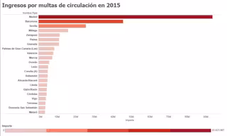 Teniendo en cuenta el capítulo de multas por infracciones de la ordenanza de circulación, que incluye a peatones y conductores, los municipios que más ingresaron en 2015 por multas de tráfico fueron Madrid, Barcelona, Sevilla, Málaga y Zaragoza.