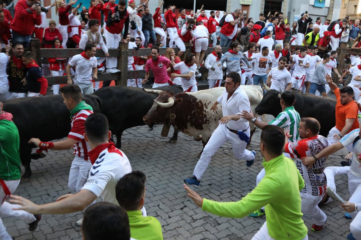 Los toros de la ganadería Jandilla han sido fieles a su fama y han protagonizado este miércoles un encierro muy rápido en el que no se han producido heridos por asta pero en el que ha habido bastantes caídas a lo largo del recorrido.