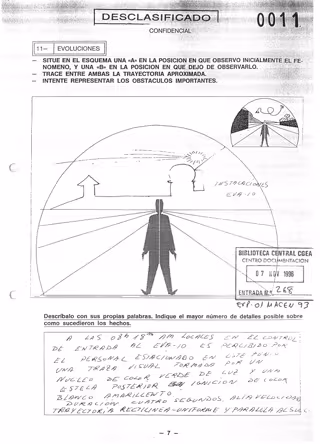 Además, se incluye un croquis realizado por el propio observador con las distintas fases de un objeto que se mantuvo durante unos 45 minutos en el cielo, del que describe su forma, color azulado, que estuvo a una altura de unos "200 metros" sobre el suelo.