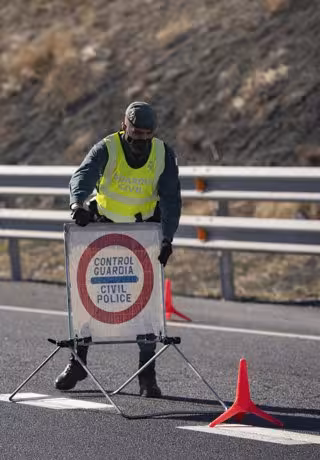 Un agente de la Guardia Civil realiza un control de movilidad en la autovía A42, a la altura de Illescas, Toledo, Castilla-La Mancha (España), a 30 de octubre de 2020. El cierre perimetral de Castilla-La Mancha y el toque de queda entre las 00.00 y las - Eduardo Parra - Europa Press
