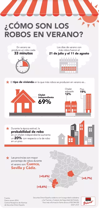 Si tienes la 'mala fortuna' de vivir en un chalet independiente de alguna de estas tres provincias y salir de vacaciones precisamente en las fechas antes mencionadas, seguramente te interese este artículo con 10 consejos para proteger tu casa... y, si no, es probable que te venga bien para evitar que tu piso forme parte del 19 por ciento que son robados durante la época estival.