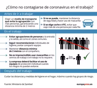 Con motivo de la reanudación al trabajo esta semana de los trabajadores no esenciales que no puedan teletrabajar desde casa, el Gobierno de España publicó una guía de buenas prácticas frente al coronavirus con una serie de recomendaciones y pautas orientadas a evitar el contagio y la propagación del virus.
