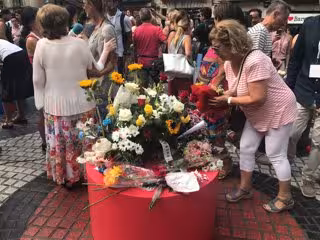 Los ciudadanos han empezado a acercarse al mosaico justo al retirarse las vallas que rodeaban el perímetro para reservar el espacio para la ofrenda de familiares y autoridades, que justo antes habían colocado las flores en varias grandes macetas de los mismos colores del mosaico, donde se detuvo la furgoneta del atentado de hace un año.