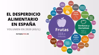 Hasta 650 millones de kilos de alimentos se desperdiciaron entre primavera y verano de 2020 en España, según cifras del Ministerio de Agricultura, Pesca y Alimentación a partir de 8.000 cuestionarios al año a 12.000 hogares y análisis de compras para el hogar. Las estadísticas recogen el dato anual de los dos últimos años o el total a lo largo de dos temporadas: otoño e invierno; y primavera y verano de varios años anteriores.