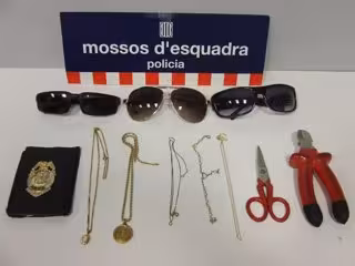 En el registro del domicilio del sospechoso, los Mossos decomisaron ropa que había llevado en alguno de sus golpes y cuatro cadenas de oro, y en su vehículo, la placa falsa, un DNI de una de sus víctimas, una cadena de oro con una medalla y unos pequeños alicates para metal.
