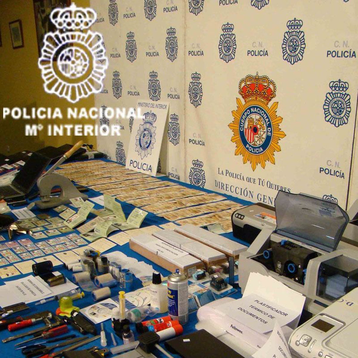 Entre los efectos de los que se ha incautado la policía están: 14.200 euros en efectivo, decenas de pasaportes falsos, cartas de identidad, permisos de conducir, varios ordenadores e impresoras y algunas fotografías de tamaño carnet.