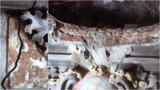 Grietas y cornisas dañadas antes de la restauración | GAIA