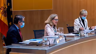 Archivo - La vicepresidenta primera y ministra de Asuntos Económicos, Nadia Calviño, preside este miércoles, 6 de octubre, la conferencia sectorial rodeada por los secretario de Estado Roberto Sánchez (Telecomunicaciones) y Artigas (Digitalización) - MINISTERIO ASUNTOS ECONOMICOS - Archivo