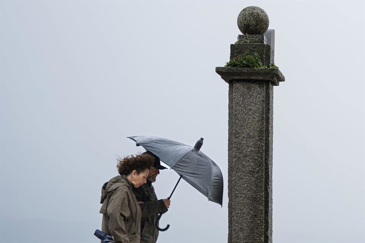 Dos personas se refugian de la lluvia con paraguas en la comarca de Salnés, a 27 de enero de 2025, en Salnés, Pontevedra, Galicia (España). - Elena Fernández - Europa Press