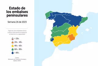 La reserva hídrica española está al 70,5% y almacena 39.493 hectómetros cúbicos (hm3) tras perder 1.376 hm3 en una semana, es decir, el 2,5% de su capacidad, según datos del Ministerio para la Transición Ecológica y el Reto Demográfico (MITECO) consultados por Europa Press. El Segura continúa a la cola de las distintas cuencas españolas y almacena el 30,2%.