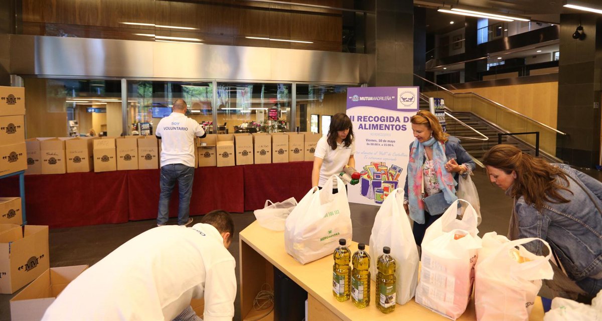 Los empleados de Mutua Madrileña han logrado reunir en una mañana más de 1.800 kilos de productos no perecederos para el Banco de Alimentos de Madrid, que los distribuirá entre familias en graves dificultades, comedores sociales, residencias de ancianos y hogares de acogida.