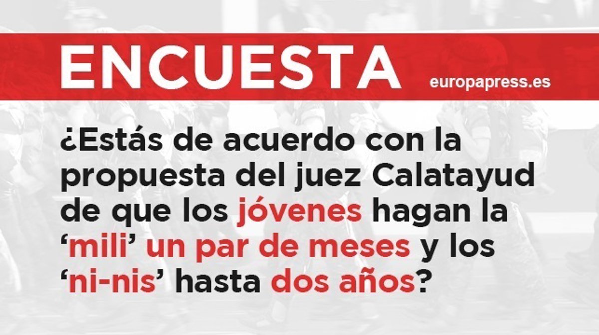 Calatayud se hace eco así de la decisión planteada por Suecia de reestablecer el servicio militar obligatorio siete años después de haber sido abolido, decisión de la que según él, España debería "tomar nota". El juez propone que este servicio dure "un par de meses" y "un año o dos" en el caso de los 'ni nis'.