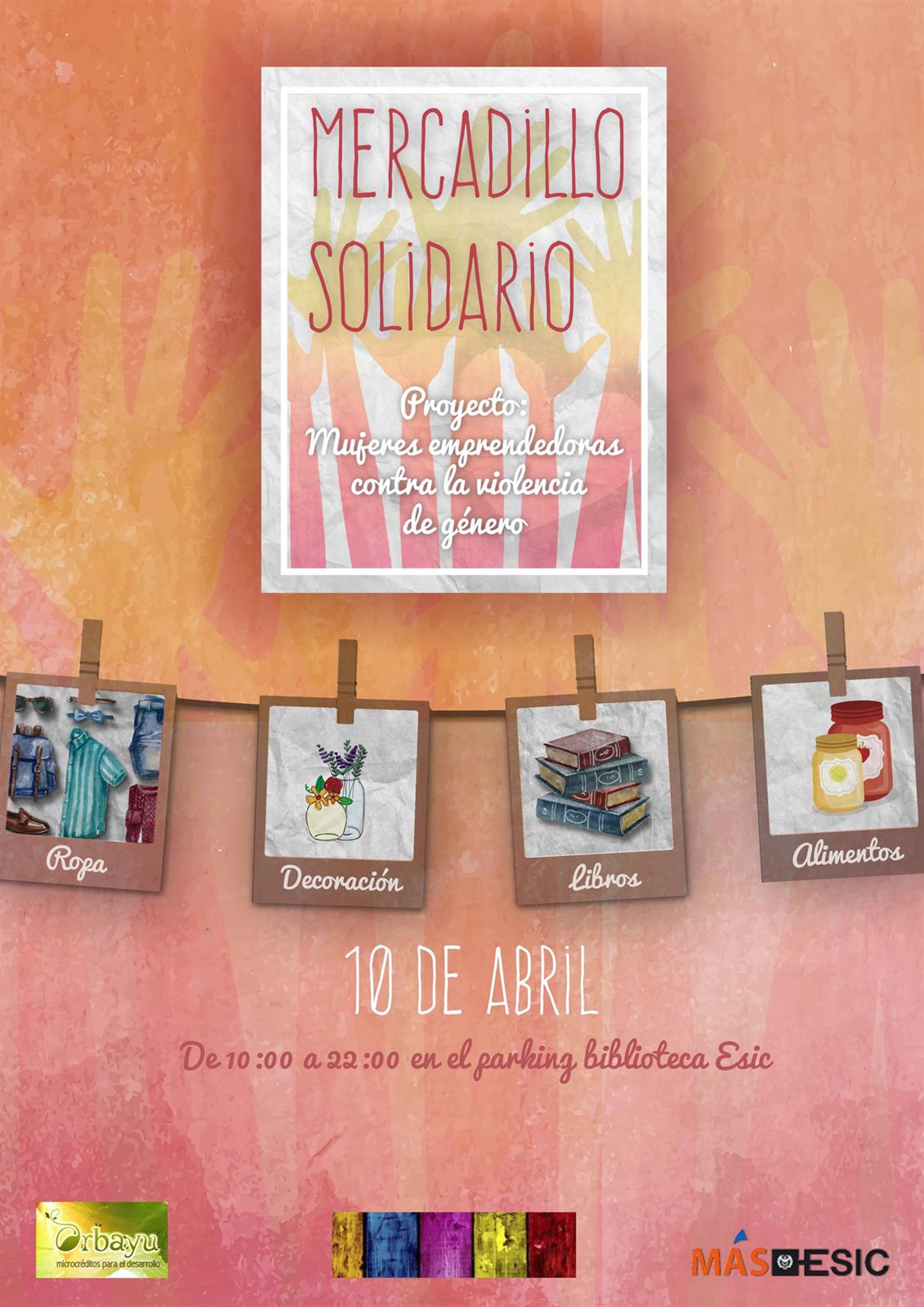 El I Mercadillo Solidario MASESIC se celebra este próximo domingo 10 de abril en la Biblioteca Municipal Universitaria ESIC (Business & Marketing School), frente a la parroquia de Santa María de Caná de Pozuelo de Alarcón, situada en la avenida Valdenigrales s/n de esta localidad madrileña. Las puertas del mercadillo abrirán de forma ininterrumpida desde las 10 de la mañana hasta las 10 de la noche.