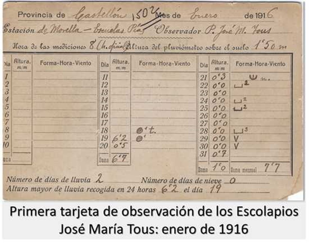 Morella fue uno de los observatorios pioneros e integrarse en esta red de observación meteorológica, en 1916, y por tanto, este año 2016 se cumplen 100 años del inicio de las observaciones meteorológicas oficiales en esa localidad.