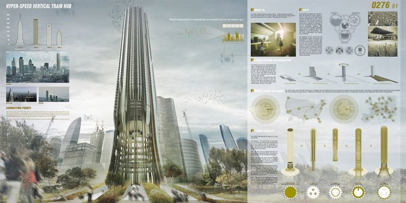 ¿Te imaginas una estación de trenes construida en vertical? Los arquitectos Lucas Mazarrasa, español, y Christopher Christophi, inglés, no solo la han imaginado sino que la han plasmado en un ambicioso proyecto, cuyas espectaculares imágenes puedes ver en este artículo.