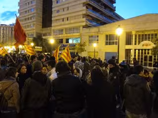 Sobre las 19 horas, los estudiantes han cortado el tráfico, se han ubicado en la calzada que hay frente a la puerta de la sede y han comenzado los cánticos contra la privatización y por "una universidad pública, de calidad y en valenciano".