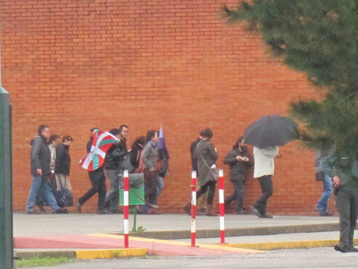 También hasta las proximidades de la cárcel se han desplazado algunas personas, entre ellas dos vecinos de Pontevedra que portaban una bandera de España con el escudo tachado para denunciar "la política de claudicación" del Estado. Estos dos individuos, junto a un tercero, profirieron gritos a la comitiva de vehículos cuando estos dejaban atrás el centro penitenciario.