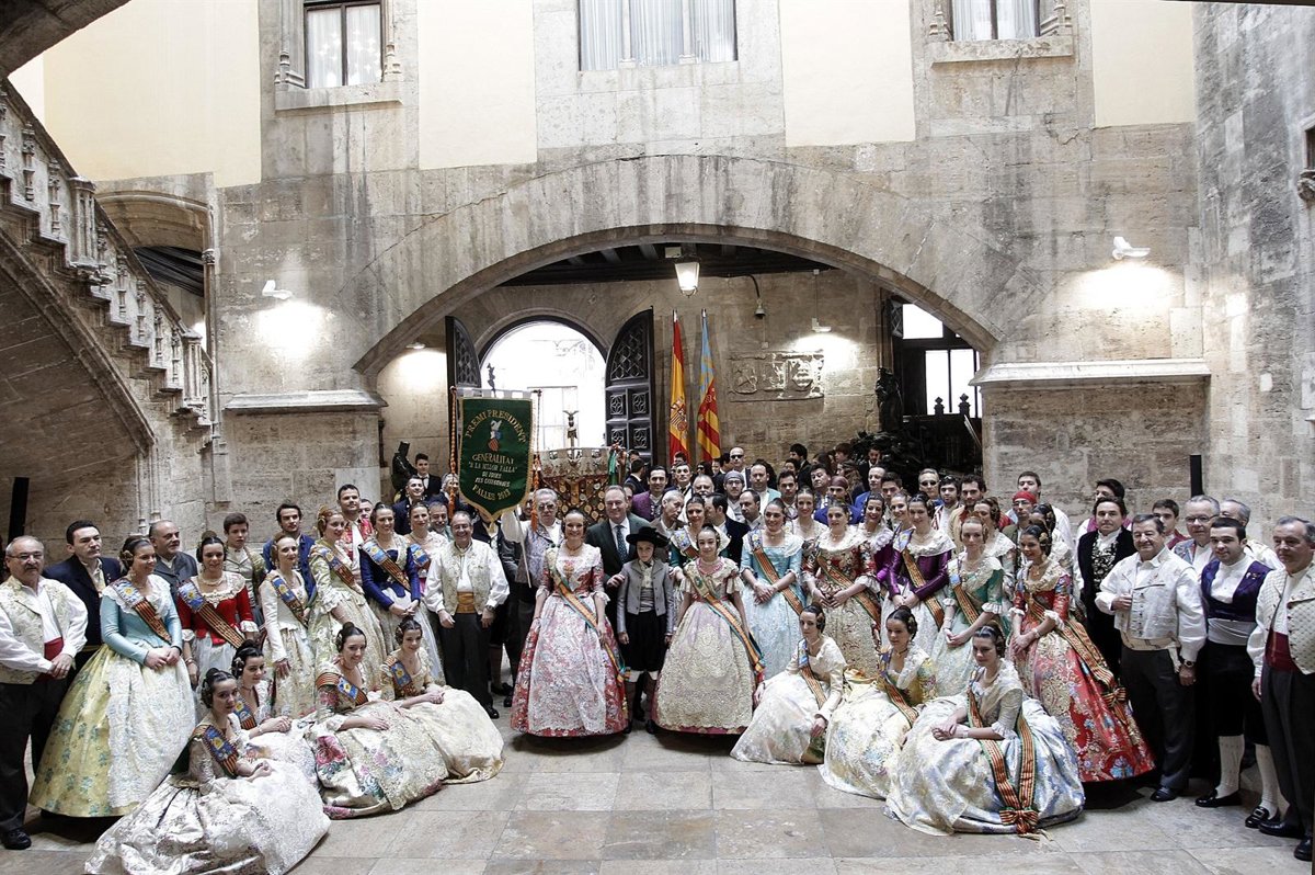 El presidente de la Generalitat, Alberto Fabra, ha hecho entrega este domingo del estandarte 'Premi President de la Generalitat a la Millor Falla de totes les categories' a la ganadora del Primer Premio de la Sección Especial, la Falla Convento Jerusalén-Matemático Marzal, que ha vuelto a lo más alto del podio con su monumento 'Qui paga mana', una alegoría sobre el poder del dinero.